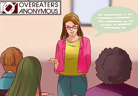 Lean on your support group. The Overeaters Anonymous program works because you learn you are not alone and that support comes from peers, sponsors and leaders. You must be willing and ready to show vulnerability and seek out the help that is there for you. Your support group might serve as the other individuals who attend meetings with you and your sponsor. However, your support group also encompasses family and friends who want to encourage you during your journey. Non-Overeaters Anonymous members are encouraged to attend open meetings to better understand the process and what you are going through. Keep in mind that OA is an anonymous group, so you may not have the ability to form relationships with other group members outside of meetings. It is the right of each individual member to maintain his or her anonymity, if desired.