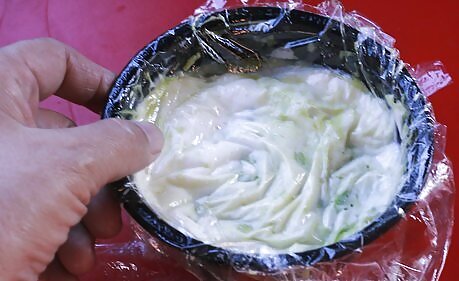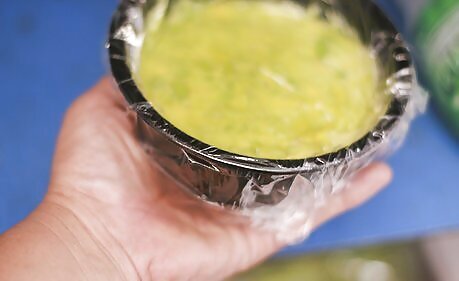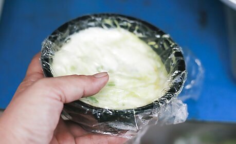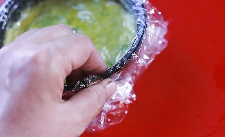 Wrap the excess plastic wrap over the edges of the bowl. If you want, you can place a tight-fitting lid over the bowl. You can also wrap a rubber band around the sides of the bowl to secure the plastic wrap.