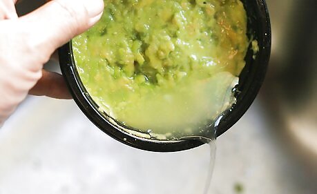 Pour the water out when you are ready to use the guacamole. If you need to, give the guacamole a quick stir. This will help blend in any excess moisture into the rest of the guacamole.