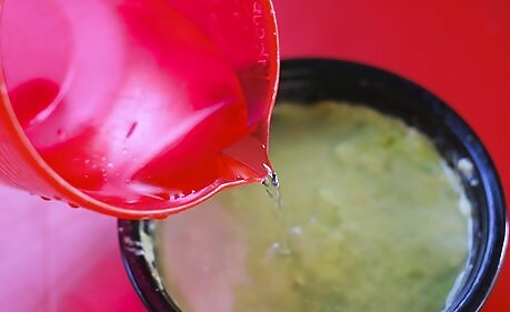 Add about ½ inch of lukewarm water. The water will create a perfect seal between the guacamole and oxygen, which is what causes this tasty dip to brown. Don't worry, the water won't soak into the guacamole. Avocadoes have a very high fat content, which helps them repel water.
