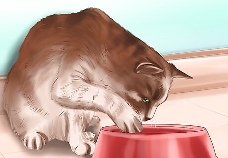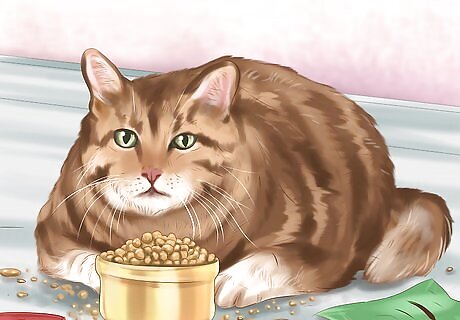 Prevent overeating. Your pet may be obese due to overeating. Some cats and dogs are simply gobblers and always want to eat. Try feeding your pet a few bites several times a day to get her into healthy eating habits. Once she stops begging between the frequent meals, slowly increase the amount of food at each meal and decrease the amount of meals. Eventually, your problem should be solved and you'll have a nibbler that doesn't overeat.
