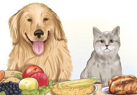 Keep the diet balanced. Dogs and cats need a well-balanced supply of vitamins and minerals with their food. Most good quality commercial dog and cat foods are balanced to meet all nutritional needs of your pet. Check the ingredient’s label on the pet food containers for multiple brands. Good foods will have meat as the top ingredients. Meat by-products, if listed, should be near the bottom of the ingredient list. Grains and vegetables are all generally used in dog foods and some cats foods. If your dog or cat has a medical condition, it is best to seek the advice of your veterinarian to make sure your pet has the best food for its health. If you feed your pet a homemade diet, carefully balance the ingredients to make a balanced diet. Consult a veterinary nutritionist to create a balanced menu for your pet. It is extremely hard to make a balanced homemade diet for a cat, so only do so with professional help.