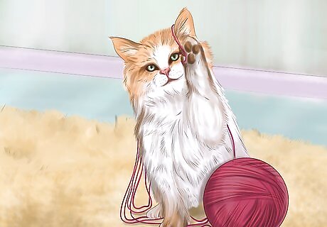 Vary the activity. Just walking it great, but as your pet gets stronger, you should vary the intensity and variety of exercise daily. What kind of exercise you choose will depend on the type and size of pet you have. Cats love toys like feathers on a string or laser pointers. Plus these give you good interaction with your cat. Obese dogs may need a more gradual start up in exercise, especially older dogs. Leash walks on cool mornings are an excellent starting points. Even if your dog can only walk a few blocks at first, that is a start. Always ask your veterinarian how much exercise your dog or cat can tolerate.