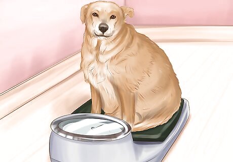Increase food intake. If your pet is underweight, increase her food calories to help her gain weight. One simple way to do so is to add an extra feeding. You want to be cautious in feeding only one very large meal a day, especially in large breed dogs. Some pets are prone to bloat after eating a large meal, which can cause an emergency condition. Watch your pet for this condition and call an emergency vet right away if your dog seems in distress.