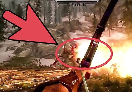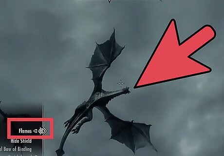 Avoid the fire breath. Sahloknir will also be randomly blowing fire breaths at you while he's on land. This attack is pretty hard to dodge at close range since dragons are quick at breathing flames. Once you notice that Sahloknir is about to open his mouth, quickly jump out of his way to avoid the breath of fire.