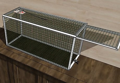 Set up cage traps to catch and relocate the rats in a wooded area. Cage traps are large traps that capture the rat while it's alive, allowing you to relocate it. Most cage traps come pre-built and require minor set up before placing the trap in a high-traffic location. Open the door to the trap and place your bait on the bait hook attached to the door. For woodrats, nuts, peanut butter, dried fruit, dental floss (for nesting), and pet food are all recommended bait. Set the trigger plate by attaching the trigger rod on the bottom of the plate to the baited hook that is attached to the door. Always relocate a rat to a wooded area during the evening, because they have bad eyesight and won't be able to find their way back to your home.