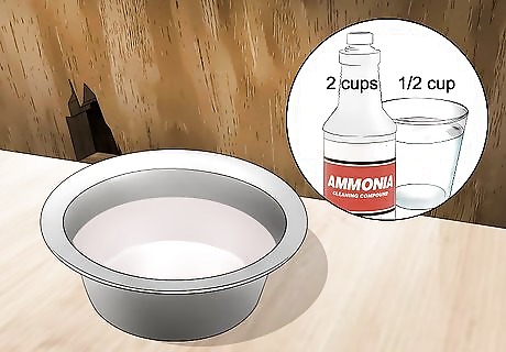 Scare off rats with the smell of ammonia. Ammonia also has a strong smell that rats despise. Mix 2 cups of ammonia with ½ cup of water in a large bowl and place the bowl in a place where the rats frequent. When placing the bowl outside, but be aware that the ammonia might scare off other animals such as squirrels or birds. You can also place the bowl inside, but make sure it's away from children and house pets.