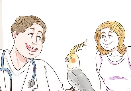 Take the bird to an avian vet. Within three days of purchase, you should take your cockatiel to an avian vet for a full health exam. Birds don’t always show signs of sickness, so this visit will be important in identifying if there are any problems. An avian veterinarian is a vet that specializes in birds. You can look up a local avian vet at the Association of Avian Vet’s website. Ask the person who’s selling the cockatiel for a health guarantee before you buy the bird. This means that you can return your cockatiel for another or get your money back if you bring it to an avian vet within a certain number of days (usually 7) and find that it’s ill.