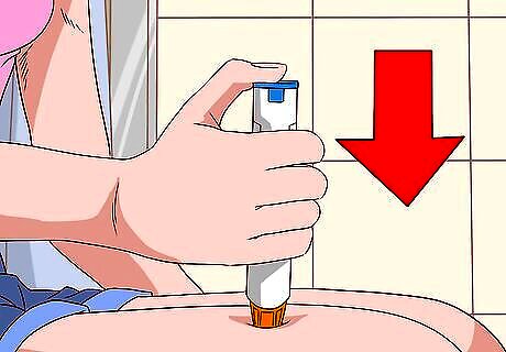 Use the emergency pen. Hold the emergency pen with your fist firmly on the middle of the device. Inject the emergency pen into the muscle or fat of the mid-outer thigh directly through the clothing, and then hold in place for a slow count of three seconds. Remove the device and then massage the injection site for 10 seconds. Do not administer the emergency pen in the buttock, veins, hands, or feet. The effects of an emergency pen may wear off after 10-20 minutes. You may administer a second dose if symptoms are not subsiding, but do not administer more than two doses.