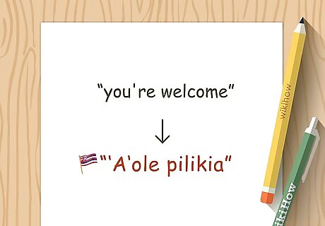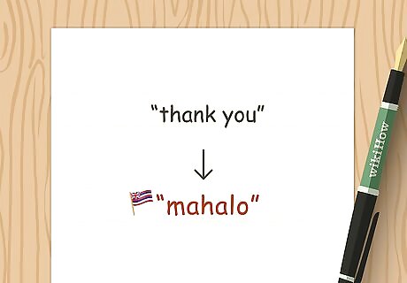Thank people by saying mahalo. This is another word you may already be familiar with. While it is generally used to mean "thank you," its use is a bit broader than its English equivalent. For example, you can also use mahalo to mean congratulations. When using the word mahalo in an English sentence, use it the same way you would use the word "thanks." For example: "Mahalo for the fishing tips! You're welcome at our bonfire tonight!" You can also use "mahalo nui," which means "thank you very much." If you're extremely grateful, use the phrase "mahalo nui loa," which means "thank you so very much."