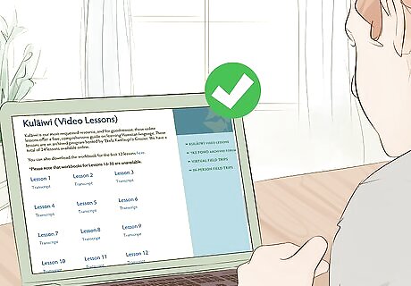 Take free Hawaiian language courses online. If you want to take a more structured approach to learning Hawaiian, a high school or college language course may work best for you. Several educational institutions in Hawaii offer free online courses. Go to http://ksdl.ksbe.edu/hawaiian_resources/kulaiwi to access free video lessons, workbooks, and other resources from the Kamehameha School District. You can also try http://www.olelo.hawaii.edu/, which is the website for the University of Hawaii – Hilo's College of Hawaiian Language.