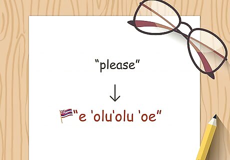 Use "e 'olu'olu 'oe" to say "please." While speaking in Hawaiian, make sure you're minding your manners by including this phrase whenever you ask someone for something. The phrase literally means "be nice, you." If you're saying "please" at the end of a sentence, add a k sound to say "ke 'olu'olu 'oe."