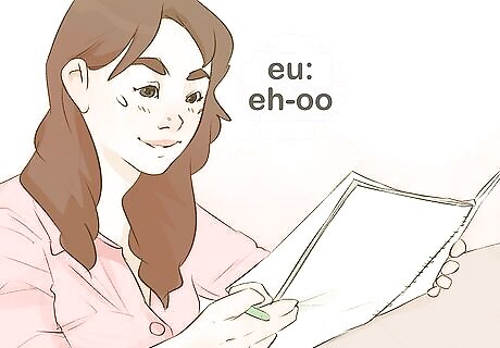 Distinguish sets of vowels in Hawaiian. You might see words with 2 vowels together that produce their own unique sound. Linguistically, these blended vowels are called diphthongs. Under the rules for syllables, 2 vowels would not exist in a single syllable. However, these specific vowel clusters are considered a single letter for the purposes of a syllable. ae is pronounced similar to the word eye. ai is pronounced similar to the i in ice. ao is pronounced similar to the ow in how. au is pronounced similar to the word ei is pronounced similar to the ei in the word eight. eu has no equivalent in English, but is the sounds eh-oo blended together in a single syllable. iu is pronounced similar to the ew in few. oi is pronounced similar to the oy in boy. ou is pronounced similar to the word owe. ui sounds like the ooey in gooey, except blended together into a single syllable.