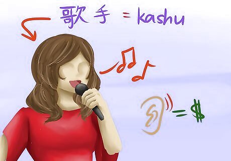 Picture Japanese words spelled with the English alphabet. It happens that in Japanese words you might see a part which looks like a word in your mother tongue. If this is the case, you can take that as a recognition support. Example: A singer is in Japanese 歌手 what is pronunced as "kashu". Can you see the English word "cash" in it?