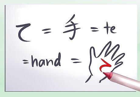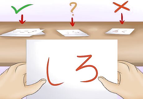 Flip the flashcard. Take a bright colour like red, pink or orange. This will help you to remember the word because the translation will be in a dark colour. With this difference our brain is more likely to remember the word. Write down the word in Hiragana or Katakana. While you write it down you should say it out loud for several times. When you`ve finished, put the card away and try to say it again by heart. Then continue with the next word.