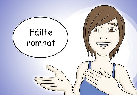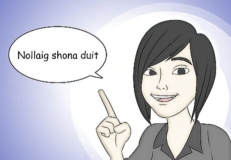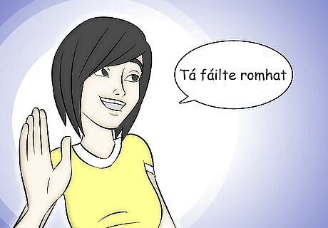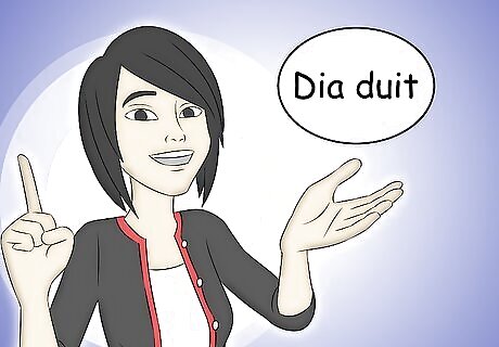 "Dia duit!" is the most traditional way of greeting someone. It's pronounced "dee a gwitch". It translates to God be with you, lit. God to you. If there's just one person say "Dia duit" but, for two or more, say "Dia daoibh". Duit is singular, daoibh is plural. Respond with "Dia's Muire duit/daoibh". This means God and Mary be with you. Extra marks if you can reply with "Dia's Muire's Pádraig duit/daoibh". Pádraig is the Irish for Patrick; St. Patrick is the patron saint of Ireland. It may be of interest to note the spelling of 'Muire' in this phrase. If your name is Mary, it translates to Maire, not Muire. However the mother of God's name is spelled Muire. This is because in Irish there are reverend and common versions of some names. For example, Uncle John would be (Uncail) Seán but St. John would be (Naomh) Eoin.