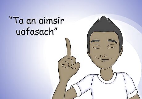 "Conas atá tu?", pronounced "cunis at-aw thwo". This simply means "How are you?". "Táim go maith" (tahw-im go-my)- I'm good. "Tá athás orm/ Táim athásach". The first phrase is much more common and translates to 'There's happiness upon me'. The second is closer to its English equivalent, meaning 'I'm happy'. "Táim ceart go leor": I'm fine or, as the Irish say, I'm grand. "Níl caill orm": Not a bother on me. "Ar bharr na gceirtlíní gealaí": 'On top of the bright waves', similar to 'On top of the world'. "Nilím go maith": I'm not good. "Tá bron orm/ Táim bronach": There's sadness upon me/I'm sad. "Ta me tinn," means I am sick; it's pronounced " Ta may chinn."