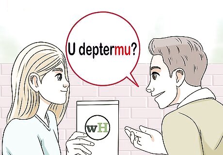 Add the question particle mu to ask yes or no questions. If your question can be answered yes or no, attach the suffix (particle) mu to the end of the noun or adjective that you're asking the question about. For example, "U deptermu?" means "Is that a notebook [yes or no]?" It can help you remember this to think of the French habit of adding the word non to the end of statements to make a question. The particle mu has different uses in Uyghur. When placed at the end of a noun or pronoun, it can also mean "also" or "too." For example, the question "U zhurnalmu?" means "Is that a magazine?" If you say "Awumu zhurnalmu?" you are asking "Is that a magazine too?" The first mu means "also" or "too," while the second indicates the question is a yes or no question.