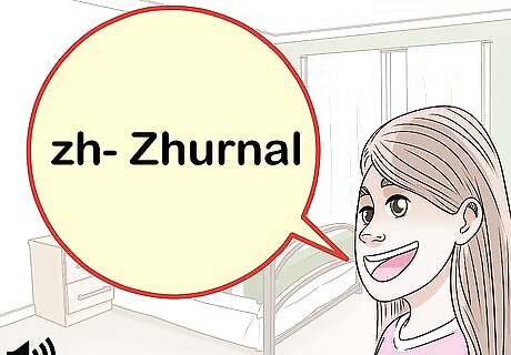 Distinguish between j and zh. In the Arabic script, there are two different letters to represent these sounds. In the Latin script, the zh consonant blend is only used for foreign words and words that imitate sounds. For example, zh appears in the Uyghur word "zhurnal," which means "journal" (or "magazine").