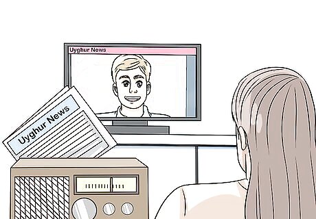 Read and watch news and radio in Uyghur. Broadcasts online in Uyghur are more than just a way to immerse yourself in the language. They also give you the opportunity to learn more about Uyghur culture and the issues that affect the Uyghur people. Radio Free Asia has articles and broadcasts in Uyghur at https://www.rfa.org/uyghur/. The website uses Arabic script rathe than the Latin alphabet.