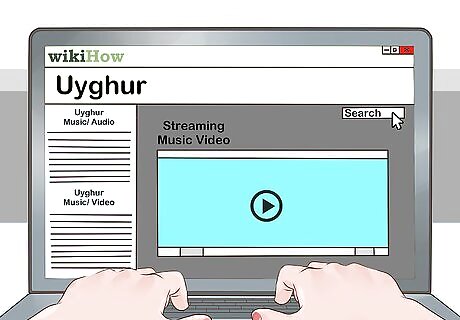 Stream Uyghur music online. YouTube and other free file-sharing sites have music videos and songs in Uyghur that you can listen to if you want to immerse yourself in the language. The rhythm and repetitive lyrics of songs enable you to more easily learn and recall the words. You can find Uyghur music as well as links to other media content on the website for the London Uyghur Ensemble at http://www.uyghurensemble.co.uk/.