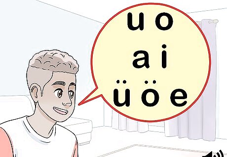 Classify vowel sounds for harmonic purposes. Like other Turkic languages, Uyghur makes use of vowel harmony, through which vowels in suffixes are changed to harmonize with the original stem. As you learn the vowel sounds, categorize them as back or front and rounded or unrounded. While you don't necessarily have to worry about vowel harmony when you're beginning to pronounce the Uyghur alphabet, these distinctions will be important later on. There are 2 back rounded vowels: u and o. The Uyghur u sounds like the oo in the English word "groove." The Uyghur o sounds like the o in the English word "not." There are 2 back unrounded vowels: a and i. Both of these vowels are both back and front vowels. The i is not subject to vowel harmony. The Uyghur a sounds like the a in the English word "palm." The Uyghur i sounds like the ee in the English word "see." There are 3 front rounded vowels: ü, ö, and e. The Uyghur ü sounds like the German ü, or like the ew in "eww." The Uyghur ö sounds like the German ö, or like the i in the English word "sir." the Uyghur e sounds like the a in the English word "cat." Aside from a and i, which can be either front or back vowels, ë is also a front unrounded vowel. It sounds like the e in the English word "pen."