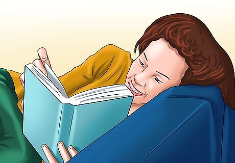 Find a comfortable reading space. A good reading space has a low noise level, ample lighting, and comfortable seating. Some people enjoy reading at home on their bed or couch. Others go out to cafes or parks. Try reading in a few different places to mix things up. The most important thing is that you enjoy the space.