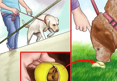 Create a safe outside space. A backyard is a great space to give your dog some activity. It’s not sufficient as a form of exercise, but can help burn off extra energy if you are worn out or otherwise unwell. Make sure to always supervise your dog in a fenced-in yard space. Turn outdoor time into exercise time, even if you are unwell or worn out. You can easily do this by sitting outside or in a doorway and throwing your dog a ball, Frisbee, or other item to retrieve for you. Incorporate some games of tug while you’re watching your dog for added activity. Consider a dog park as an alternative to a yard space. This can help your dog get exercise and activity that burns energy—and boredom.