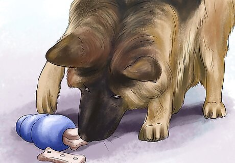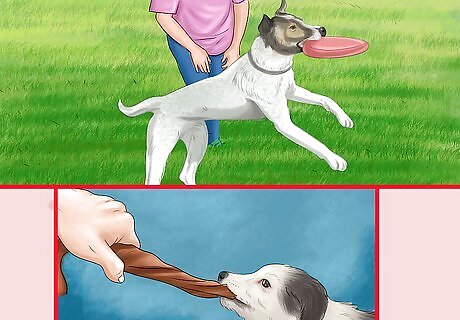 Make your dog work for its meal. Your dog may be hungry when it comes in from outside or after an indoor activity. Feeding your dog by using smart toys such as Kongs, Buster Cubes, Squirrel Dudes, and Tug-a-Jugs can provide vital activity and mental stimulation that requires little effort on your part. Consider giving your dog some of its regular food when you get home so it’s not starving. Then put the rest into a smart toy. Recognize that this is a great way to keep your dog busy when you are not home, feeling unwell, or unable to provide more activity because of external factors.
