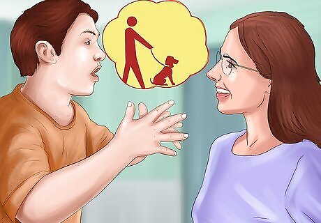 Ask family and friends for help. It may be difficult at times to live with your high energy dog. This is true if you are worn out, physically unwell, or stressed out. Enlist the help of family members or friends with your dog. Many people are more than happy to help out with a cute pet. This can give you a needed break and provide your dog with the necessary activity to burn its energy and stay content. Consider asking friends who have children to give you a hand. Kids often love dogs and have similar amounts of energy to run around and play games.