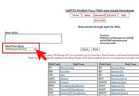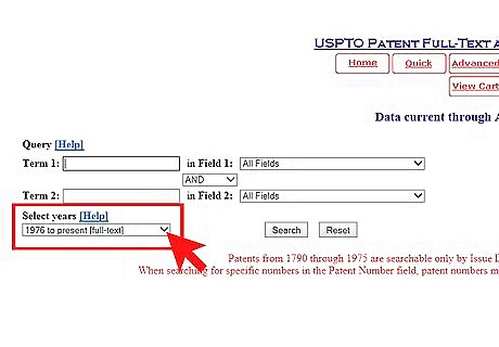 Limit the years of your search. The default search is the entire full-text database, which covers patents issued from 1976 to the present. However, if you only want to search patents issued in the last 20 years, for example, you can limit your search accordingly.