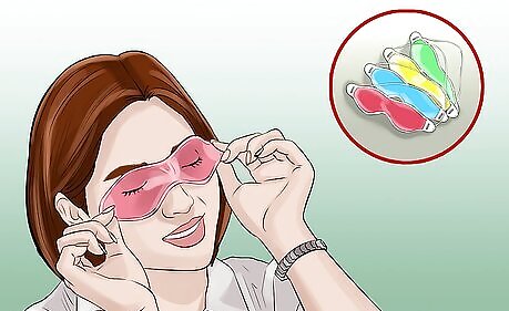 Use cold to reduce puffiness. Allergies can give you puffy eyes, but cold can help reduce that puffiness. For instance, try keeping a gel-filled eye mask in your fridge. Put it on your eyes for about 10 minutes on the mornings when they're puffy. If you don't have a mask, use what you have, even slices of cool cucumber or ice wrapped in a washcloth.