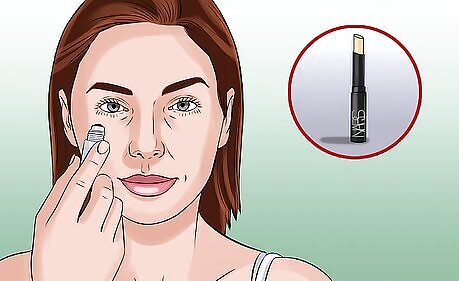 Cover redness. Start with a good foundation of your choice that matches your skin tone. Next, in areas that are particularly red, such as around your nose, add a green-tinted concealer. The green tint helps cancel out the red, smoothing your complexion. Blend in the color as much as possible. Finally, add a creamy, skin-toned concealer on top of everything for a smooth finish.