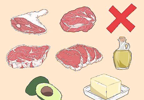 Cut back on fatty foods to reduce calories and IBS symptoms. Reducing your intake of fattening foods can help to lower your overall calorie intake, which may help you to lose weight. Fattening foods also tend to cause IBS symptoms to flare up, so cutting back on these may help you to feel better in general. Some foods to avoid or limit include: Butter, oils, and avocados Meat