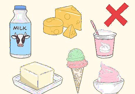 Try a lactose-free diet for a while to see if it helps your IBS symptoms. Lactose is a natural sugar found in milk and dairy products. If you have persistent abdominal bloating, you may want to try a lactose-free diet, which would mean avoiding milk and milk products such as cream, butter, ice cream, yogurt, and cheese. Many breads and cereals also contain lactose, so read the ingredients carefully. If the lactose-free diet doesn’t improve your symptoms, you can go back to eating lactose.