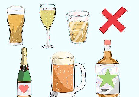 Limit or avoid alcoholic beverages. Alcohol causes IBS symptoms to flare up in some people and it adds empty calories, which can lead to weight gain. You might also end up eating more than you intended while under the influence of alcohol because it impairs your judgement. Avoid alcohol whenever possible to avoid IBS flare-ups and excess calories. If you do drink, do so in moderation, which is defined as no more than 1 drink per day for a woman or 2 drinks per day for a man. A serving of alcohol is equal to 12 fl oz (350 mL) of beer, 5 fl oz (150 mL) of wine, or 1.5 fl oz (44 mL) of spirits.