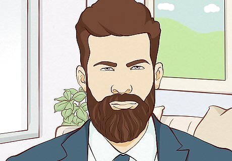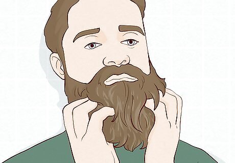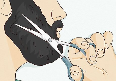 Perform maintenance trims. While the beard is completely dry, slowly pull outward with the comb so all hairs are loose. Pull downward once on all sides of the beard, allowing for the natural shape of the beard. This will expose all the extra scraggly hairs that do not fit into the beard. Take the scissors and slowly chop away at each individual hair until it corresponds with the shape of the beard. After the few months of initial growth, trims should occur about once a month to maintain a clean look.