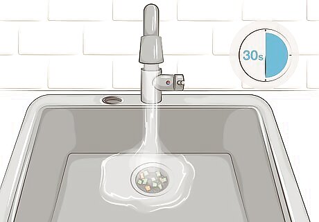 Keep the disposal on for 30 seconds after you’re done putting food in. Once you’ve put your last handful of food scraps in the disposal, wait for about 30 seconds to let the disposal finish working. If you don’t, you could leave food scraps in the blades, causing it to jam up the next time you use it.