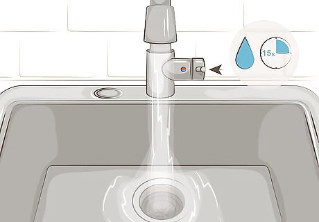 Turn the disposal off, but let the water run for 15 more seconds. Flip the switch to turn your disposal off, but keep using cold water from your sink for a little bit longer. This will help to flush out any remaining food that might be stuck in the disposal. Remember to always use cold water, even when the disposal is off, to avoid heating up any grease or fat stuck on the blades.