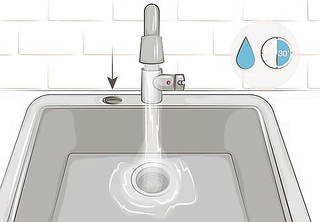 Run hot water through the disposal to unclog it. If your disposal is draining slowly, try pouring 2 large bowls of hot water down the disposal. Wait for 10 minutes, then turn the disposal on and flush it with cold water to wash away any food scraps. If flushing the disposal doesn’t work, you may need to take apart the pipes to manually clean them out, in which case you should call a professional.