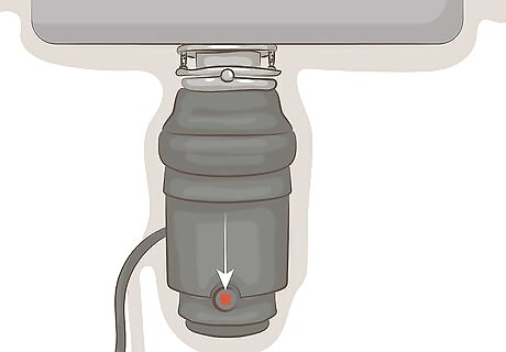 Push the red reset button if your disposal won’t turn on. If you flip the switch to your disposal and nothing happens, it may have overheated and shut itself off. Open up the cabinet under your sink and find the red button on the engine part of your garbage disposal. Push the button in to reset your disposal. If you still can’t turn on your disposal, it may have flipped a circuit breaker. Check the electrical box in your home to see if the breakers are all on.