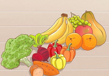 Make vegetables and fruits the centerpiece of your diet. Eating a variety of fruits and vegetables every day is great for your cardiovascular health. They’re rich in vitamins (especially antioxidant vitamins A, C, and E, which clear the body’s toxic oxygen metabolites), minerals, and fiber. They’re also low in calories and unhealthy fats. Aim to fill at least half your plate with vegetables and fruits at every meal, which equals about 4-5 servings of each per day. Different colors indicate different nutrients, so eat a colorful variety of fruits and veggies every day.