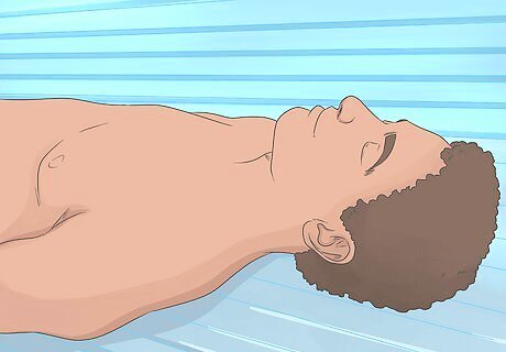 Use a tanning bed. Many people enjoy visiting their local tanning salons to use a tanning bed. Tanning beds use UV lights to tan the entire surface of your skin. These beds can be a good idea if you need to improve your tan during the winter months. Check your local area for any salons or businesses that offer tanning beds. UV rays can be harmful to your skin and may cause skin cancer. Avoid using tanning beds often to avoid this risk.