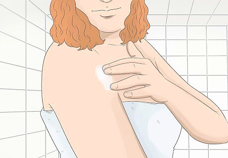 Take a shower. Showering before your tanning session can help prepare your skin by moisturizing it. Moisturized skin will allow the tanning process to create a darker and longer lasting tan. Always make sure that you have showered and moisturized before going tanning to have your tan last longer.