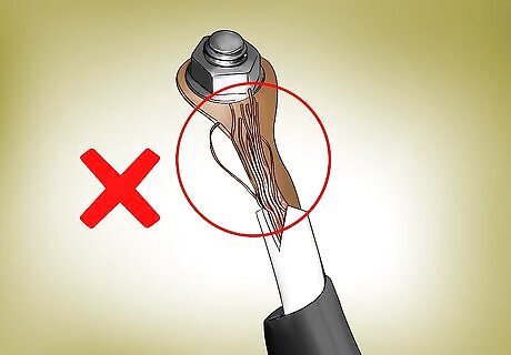 Replace any frayed cables immediately. Frayed cables are electrical hazards and should be dealt with before operating the cart again. Twist the nuts on the end clamps counterclockwise to remove them. Replace them with new battery cables purchased from an auto parts store. If the nuts are difficult to remove, they may be corroded in place. Twist them off with pliers, but be careful not to touch any other metal until you’re done.
