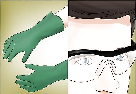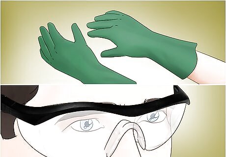 Put on acid-proof gloves and glasses. Although you likely won’t come into contact with battery acid, taking precautions is always a good idea. Wear eye protection and long-sleeved clothing. Slip on a pair of gloves to protect your hands. Take off any jewelry. Not only can the acid ruin your expensive ring, but the metal can ruin the battery. You can purchase chemical-resistant rubber gloves at many general and home improvement stores.