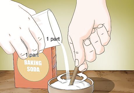 Mix equal amounts of baking soda and water. Baking soda is a very effective natural cleaner that also happens to neutralize acid. Get a clean mixing container. Pour the 2 ingredients in, then stir them into a paste. For example, you can start by mixing 1 oz (28 g) of baking soda into 1 fl oz (30 mL) of water. Make more as needed.