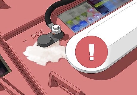 Wear safety gloves and glasses. Acid leaks out of batteries over time, collecting on the terminals. Take safety precautions to avoid coming into contact with it. Wear long clothing and put away any jewelry as well.