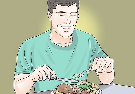 Eat well. In a time when things seem out of control, you may neglect to focus on good eating habits. You may not eat much, or you may end up eating junk food. Both of those put a strain on you. Try to eat as healthy as you can, even if you have to order food in sometimes or rely on simple meals like salads. Avoid sugary or processed foods since they can make you feel bad physically and emotionally. Remember to include lean proteins, whole grains, fruits, and veggies in your diet. Eat nutrition-dense foods, such as avocados, walnuts, berries, wild-caught fish, and apples. Incorporate smoothies into your diet for a quick, nutritious meal.