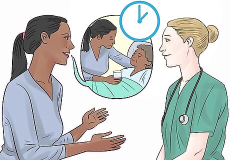 Get professional help. If your loved one has a long-term serious illness, professional help is often needed. Respite care is a great option for getting help and giving yourself a break from time to time. Maybe your loved one needs to be in a long-term care facility or spend time at an adult daycare a few days per week that has the capability of providing care for your loved one. Maybe you will keep your loved one at home, but you'll need to hire help to come over and provide some care for your loved one. Either way, having a professional around can help take some of the burden off of you. Some communities offer volunteer respite care workers who can come and care for your loved one for a few hours so that you can take a break. You can learn more about respite care for older adults through your local Area Agency on Aging. When considering professional help, you may need to do some persuading when it comes to your loved one. That is, some people don't like the idea of having outside help. However, most people will concede when they realize that you can't do everything yourself. If your loved one is particularly against the idea, you may need to have someone who's been in the same situation (as a caregiver or a professional) come talk to the person. When deciding who to hire, first look at the kind of care you need help with. For instance, you may need non-medical assistance, to provide things like bathroom assistance and even things like cooking and cleaning. Medical care, such as home healthcare, helps with things like providing medications and need to be ordered by a doctor. Some in-home health may be covered by programs like Medicare. Make sure you ask what your insurance covers when looking for professional help. If your loved one is suffering from a terminal illness, hospice may be a good option for you, which can provide care for your loved one, if he or she has 6 months or less to live.